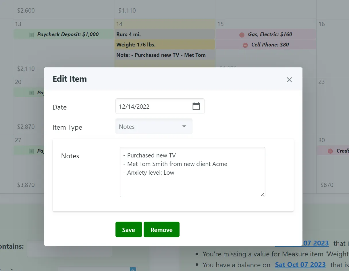 For example, you can track fitness activities, income, expenses... and any other measure you can dream up!