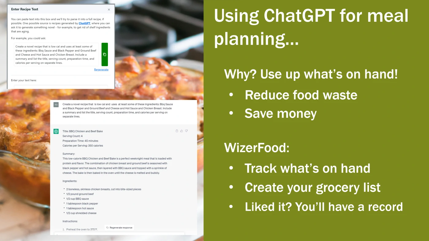Learn how WizerFood can be "Life's Dashboard," helping streamline, eat better, save money, save time shopping, save the environment, and more. It also has Alexa integration, and plays well with ChatGPT. Check back as new features are added regularly!